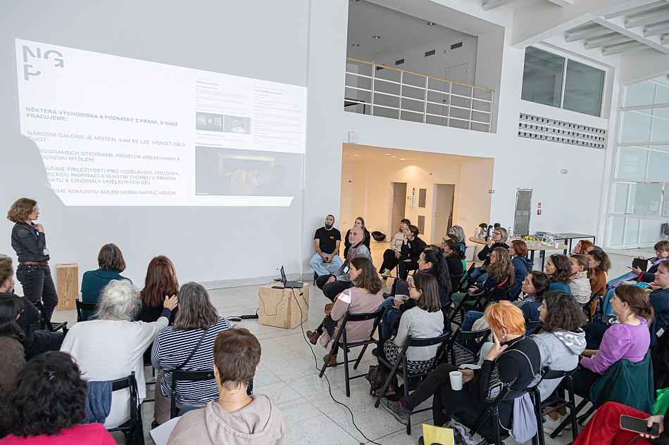 Národní galerie také měla příležitost představit pedagogům vlastní nabídku, s akcentem ke vzdělávacím programům, studijním materiálům a komentovaným prohlídkám pro pedagogy zdarma, které doporučila sledovat v newsletteru školám.